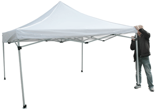 | Fußrohre auf die gewünschte Höhe arretieren und fertig steht Ihr Faltzelt. |